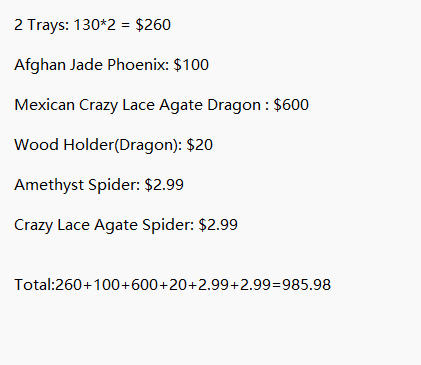 2 Trays: 130*2 = $260